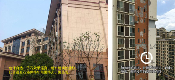 外墻仿石基本的問題是“做得像石材”,避免“做得像涂料”。來士威仿石漆17年行業經驗,其仿石效果逼真,客戶可提供任何石材,專業打樣,仿石漆仿石度高達95%。