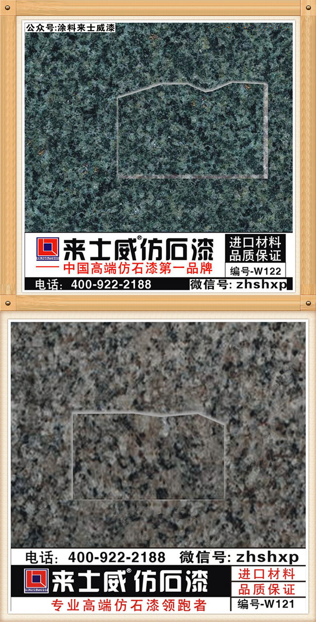 目前市場上,對于真石漆與仿石漆兩者的關系容易混淆慨念,各種說法不一,甚至有的理解認為:真石漆與仿石漆根本就是不同的兩種涂料。但實質上,二者的關系不能一概而論,因為兩者屬于從屬關系,仿石漆中包含了真石漆,這才是二者真正的關系。(以下是來士威4仿石漆實色樣板比較)