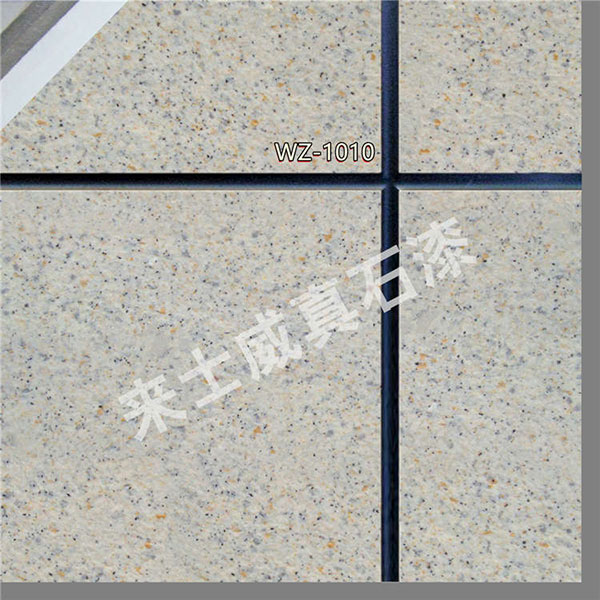 真石定義:真石漆主要由高分子聚合物、天然彩石砂及相關助劑制成,干結固化后堅硬如石,看起來像天然真石一樣。