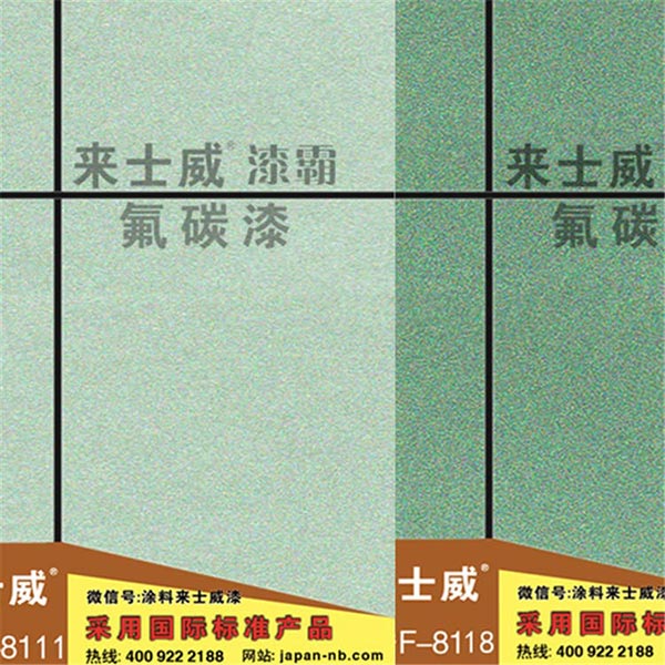 氟碳面漆是選用優良氟碳樹脂為基料,添加助劑及各種金屬效果顏料精制而成的雙組份溶劑型外墻漆,具有良好的耐候性、抗污性和抗腐蝕性,金屬效果顏料的隨向異色性賦予漆膜很高的裝飾性和華麗的質感。