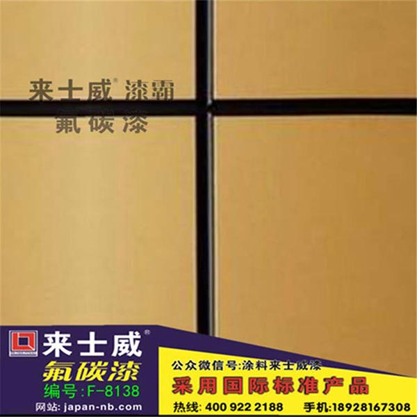 氟碳面漆是選用優良氟碳樹脂為基料,添加助劑及各種金屬效果顏料精制而成的雙組份溶劑型外墻漆,具有良好的耐候性、抗污性和抗腐蝕性,金屬效果顏料的隨向異色性賦予漆膜很高的裝飾性和華麗的質感。